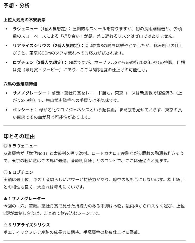 やはり内容にはツッコミどころありますが、予想はいい感じに見えます。