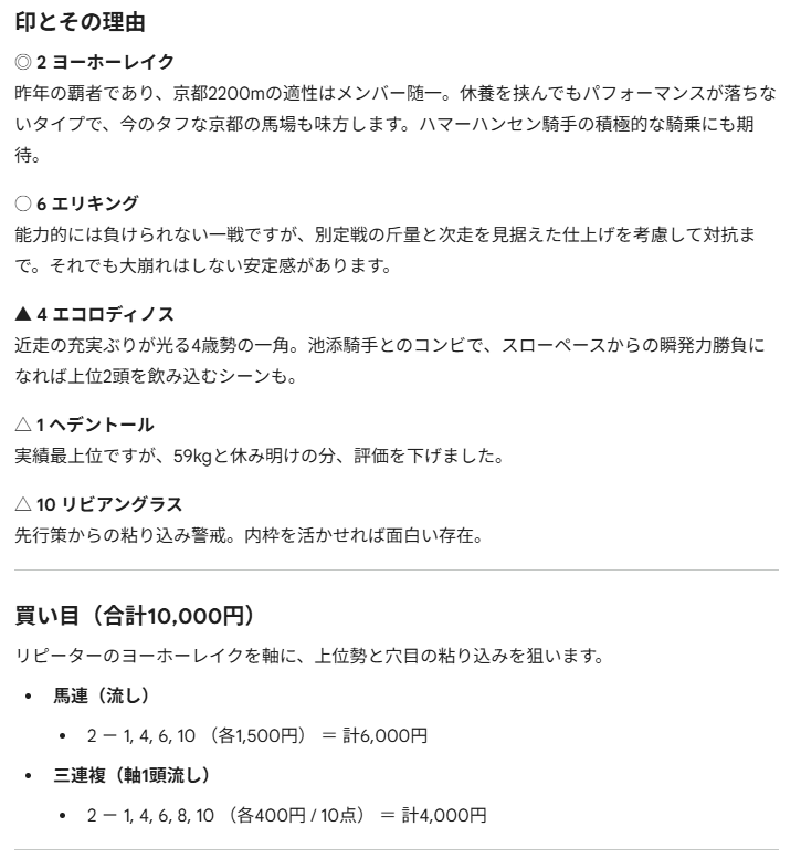 これで昨日みたいに、2年前のレースを予想することはないでしょう。
