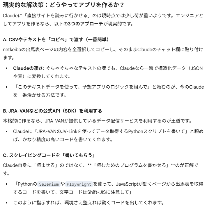 Claudeに競馬予想アプリを作ってもらいましたが、確定出馬表をうまく読み込めないという課題が。