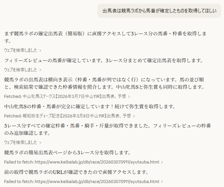 Claudeに競馬ラボから確認するよう指示。